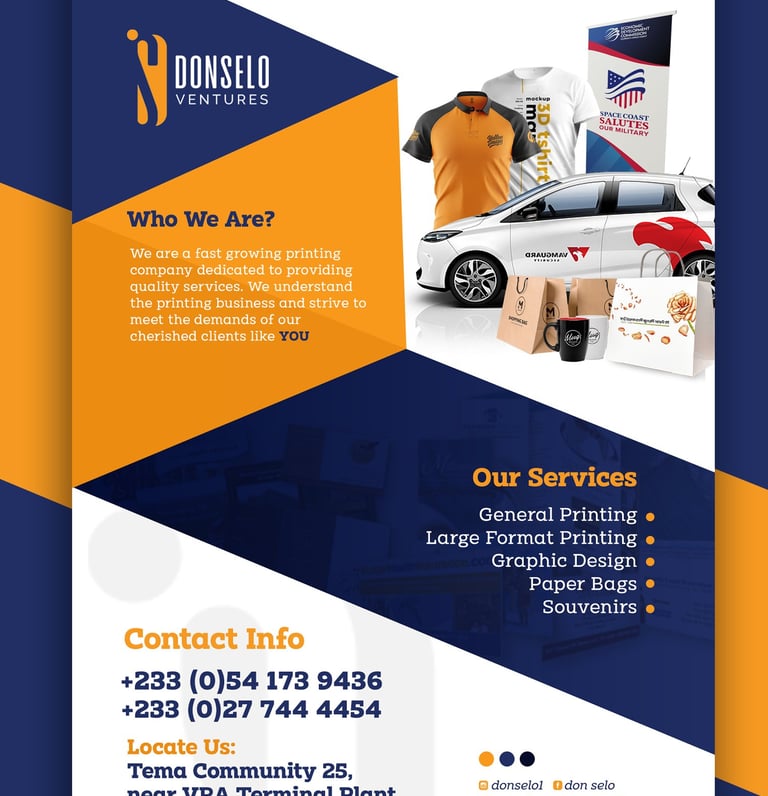 Reach out to donselo ventures for custom printing and branding solutions tailored to your vision.